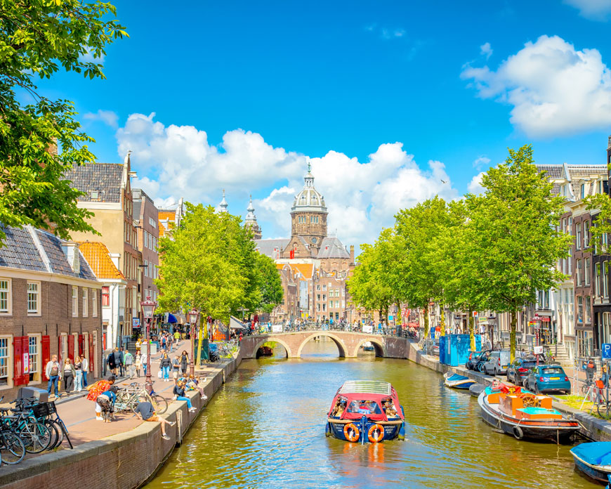 Départ matinal en autocar. Autoroute pour Amsterdam. Déjeuner libre. Embarquement vers 18h à bord de votre bateau. Installation, présentation de l'équipage, cocktail de bienvenue. Dîner à bord. Logement.